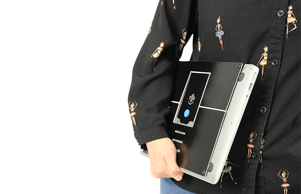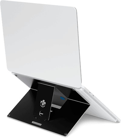 Du fäster Riser Attachable enkelt och en gång på baksidan av din bärbara dator med hjälp av kardborreband. För instruktioner, kolla in vår manual.