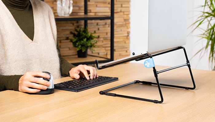 Vi strävar efter ergonomiska lösningar som passar alla, oavsett längd, kroppsbyggnad och om man är vänster- eller högerhänt. Våra nya produkter utvärderas av externa ergonomer och ett testpanel bestående av användare. Sedan juni 2022 är våra ergonomiska möss, Break-tangentbord, Riser-laptopstativ, monitorarmar, dokumenthållare och Treepod-laptop- och surfplattestativ även AGR-certifierade. Dessutom har vi vunnit Benelux Office Award för Break-programvaran och vår Viva-laptopfodral.